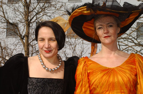 "Zebrastreifen und Reiterstaffel -Schutz und Sicherheit auf Schritt und Tritt" Die Aktion fand unter Mitwirkung von Herrn Polizeipräsidenten Wilfried Henning und der Reiterstaffel des Polizeipräsidiums Nordhessen, unter der Leitung von Polizeihauptkommissarin Ulrike Heister, sowie zahlreichen Ehrengästen, am Samstag, dem 27.März 2004, um 15.00 Uhr, am "Zebrastreifen" Kulturbahnhof, Ladestraße Nord, neben dem Polizeipräsidium, statt. Folgende prominente Bürger Kassels wirkten an unserer Aktion mit: Herr Harold Grönke, leitender Geschäftsführer der Dierichs GmbH &Co KG, BMW- Niederlassung Kassel, vertreten durch Herrn Verkaufsleiter Wolfgang Schulz, Magistratsdirektor Herr Hubertus Döring, Herr Uwe Schön, IHK Kassel, Herr Polizeirat Wolfgang Peters und Herr Boris Boxan, Repro+Druck Boxan. Nach dem Vorbild des amerikanischen Western „The Magnificent Seven“ von John Sturges, aus dem Jahre 1960, nahmen die o.g. Herrschaften auf den Pferden der Reiterstaffel Platz. Sie symbolisierten auf diese Weise ihre Verbundenheit mit der sozialen, kulturellen und wirtschaftlichen Weiterentwicklung der Stadt Kassel und der Region. Hierzu gab der glanzvolle Rahmen der Kulturhauptstadtbewerbung Gelegenheit, eindrucksvoll auf die Werte von Sicherheit und Schutz, sowie Rücksichtnahme und Abstandswahrung in Bereichen menschlichen Zusammenlebens hinzuweisen. Die Initiatorinnen, Doris Gutermuth-Lissner und Ulrike Petschelt, waren in historischen Roben aus dem Fundus des Nationaltheaters Weimar gekleidet. Der Generalintendant Herr Stephan Märki ließ in einem Brief die zukünftige Kulturhauptstadt Europas von Weimar, bereits 1999 zur selbigen gekürt, grüßen und drückte den Initiatorinnen des Projektes "Kunst beschützt Leben" sein Wohlwollen und seine Unterstützung aus. |